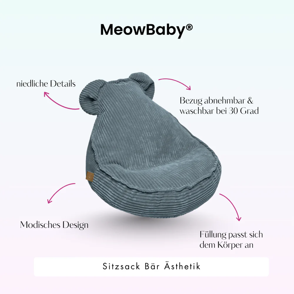 MeowBaby Sitzsack Ästhetik Cord Bär - türkis