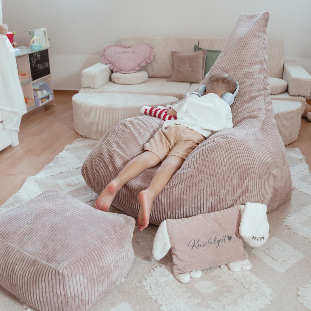 Dieser Kindersitzsack lädt zum Wachsen, Spielen und Ausruhen ein. Er ist mehr als ein Spielmöbel – er ist ein treuer Begleiter durch die Kindheit.