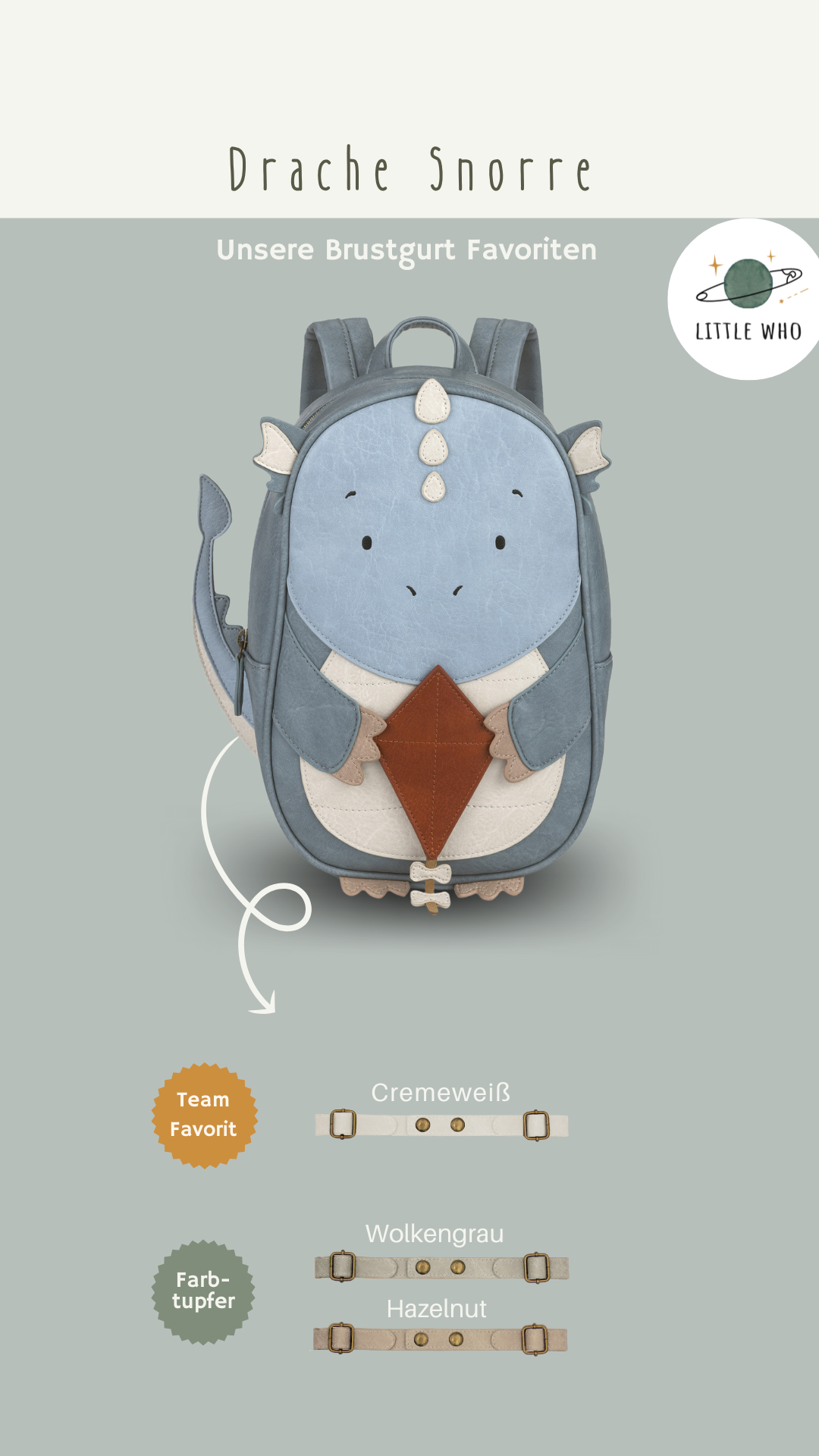 Mithilfe eines Reißverschlusses lässt sich der Rucksack leicht und zuverlässig schließen. Die Träger sind verstellbar und können nach Bedarf angepasst werden. Aufgrund des geringen Leergewichts und der super weichen Schulterriemen verfügt der Rucksack über einen angenehmen Tragekomfort. In einer Innentasche können lassen sich kleine Mitbringsel verstauen. Der verstärkte Tragegriff sorgt für einen angenehmen Tragekomfort bei Mama & Papa.